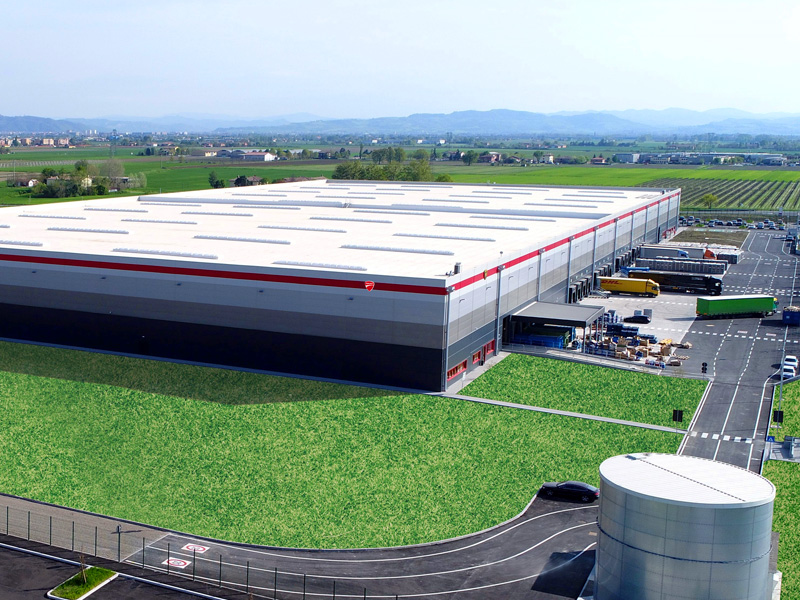 Das neue BTS (Build-to-Suit) Teilelager in Parco P3 in Sala Bolognese, nur wenige Kilometer außerhalb von Bologna wurde vor Kurzem eröffnet. Der moderne Komplex erstreckt sich über 30.000 m2. Von P3, einem Unternehmen das sich auf die Konstruktion und Verwaltung von Logistikgebäuden spezialisiert hat, erbaut fungiert das Gebäude als das neue Verteilerzentrum für Ducati und Lamborghini Zubehör und Ersatzteile.