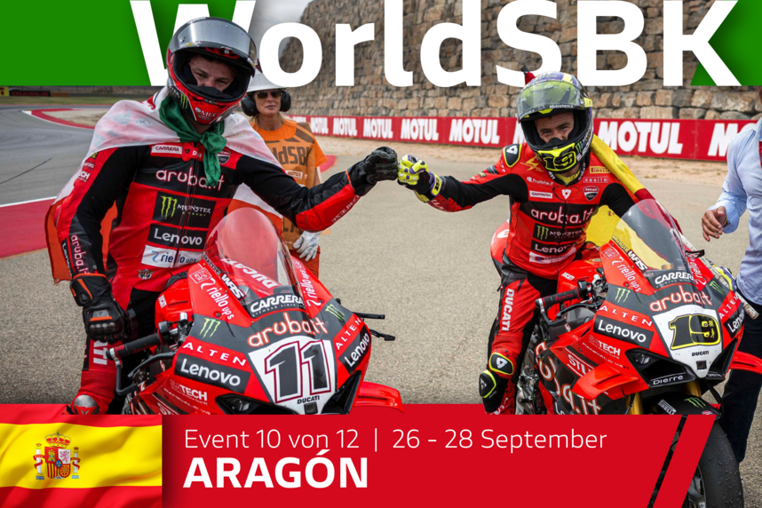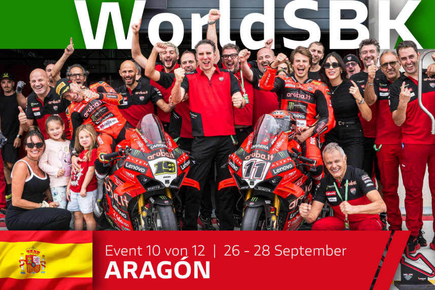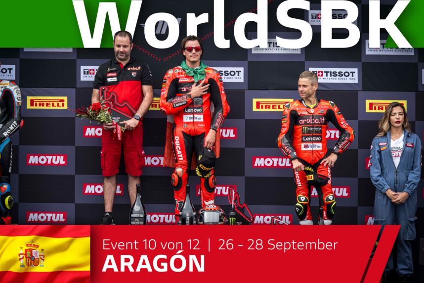 Die zehnte Runde der WorldSBK-Saison 2025 im Motorland Aragon begann am Freitag für das Team Aruba.it Racing - Ducati überzeugend. Nachdem Nicolò Bulega am Morgen, der von eher tiefen Temperaturen geprägt war, den zweiten Platz im FP1 belegt hatte, gelang es ihm am Nachmittag, sich mit seiner Ducati Panigale V4R noch weiter zu verbessern. Er beendete das FP2 mit einer Zeit von 1:48,736 und belegte damit den zweiten Platz in der Gesamtwertung.
