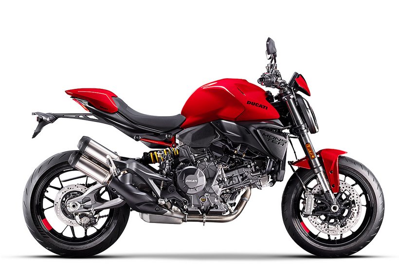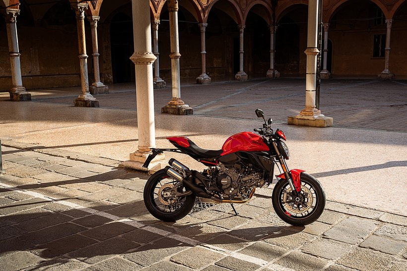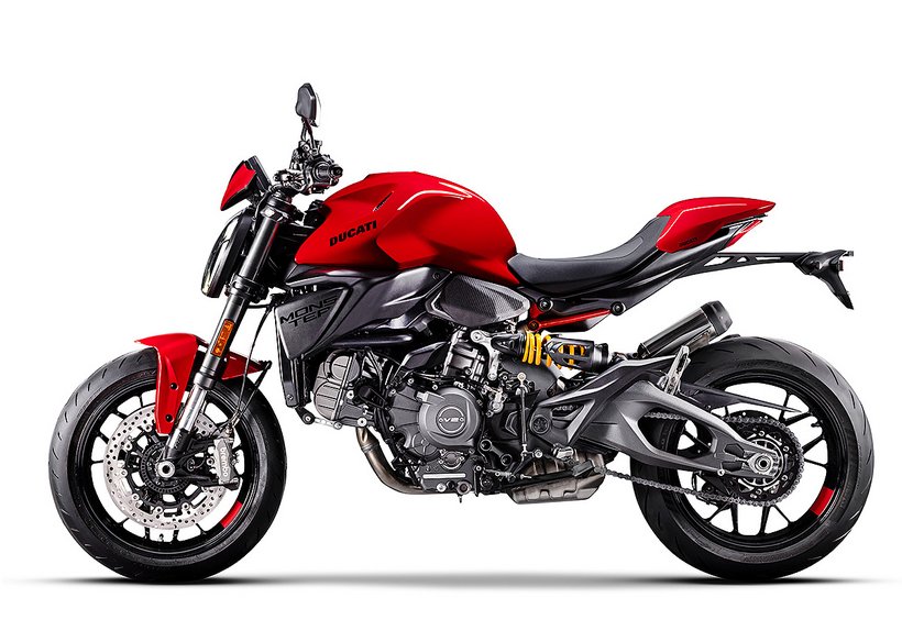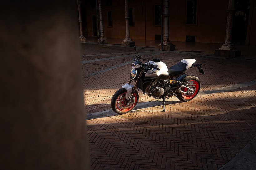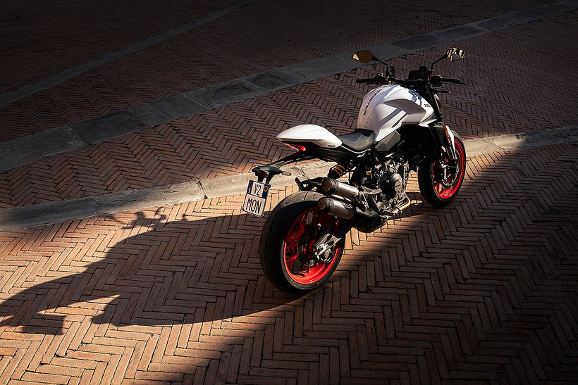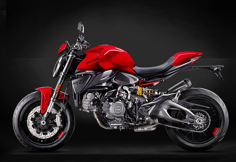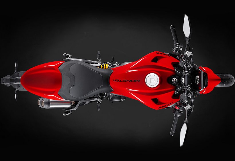 Die neue Monster wurde nochmals um 4 Kilogramm leichter und wiegt jetzt nur noch 175 Kilogramm fahrbereit ohne Kraftstoff – ein neuer Maßstab in ihrem Segment. Dieser Gewichtsverlust ist das Ergebnis eines konsequenten Leichtbaus und eines durchdachten Konzepts, bei dem der Monocoque-Frame und die Integration des Motors als tragendes Element eine entscheidende Rolle spielen und für mehr Agilität, bessere Fahrdynamik und ein noch direkteres Fahrerlebnis sorgen.