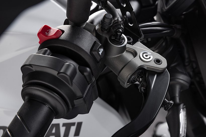 Bei jedem Detail wurde Wert auf hochwertige Komponenten gelegt: Konischer Aluminiumlenker, einstellbarer Brems- und Kupplungshebel, Radialpumpen bei Bremse und Kupplung mit separaten Flüssigkeitstanks und Fußrasten mit geschmiedeten Anbauteilen.