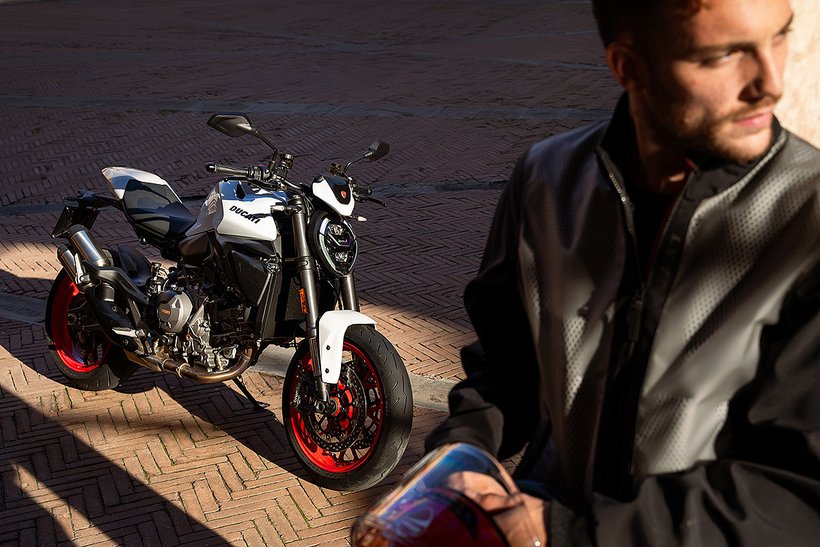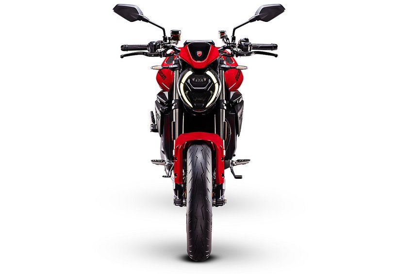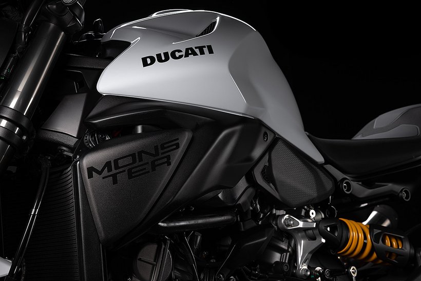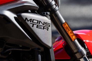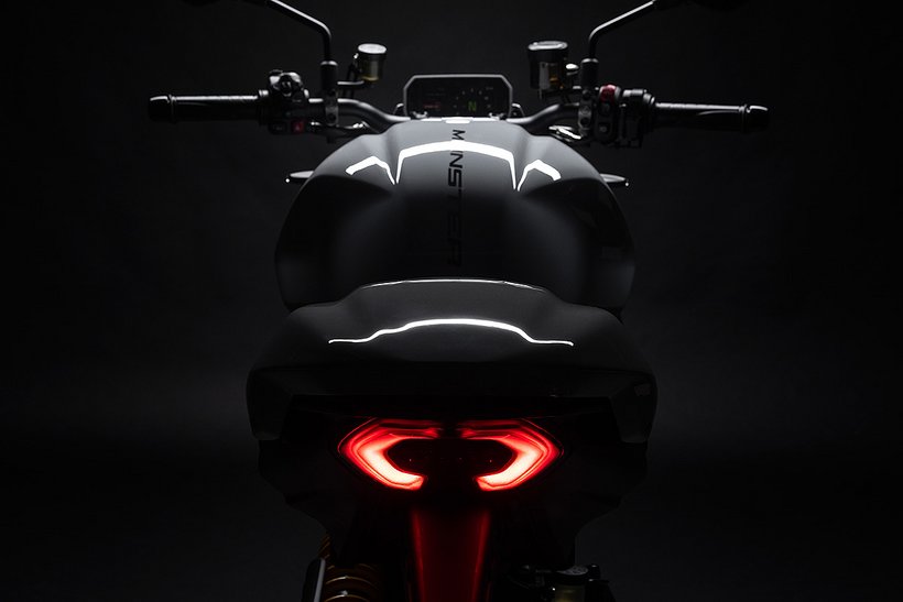 Die Silhouette der Monster ist durch ihre unverwechselbare, dreibogige Linienführung sofort erkennbar. Dieses ikonische Designelement zieht sich durch alle Generationen und steht für Klarheit, Kraft und Charakter. In der neuen Monster vereint es Tradition und Innovation zu einer stimmigen Verbindung aus Vergangenheit und Zukunft. Die neue Monster ist 4 Kilogramm leichter als ihr Vorgängermodell und zugleich die technologisch fortschrittlichste ihrer Geschichte.