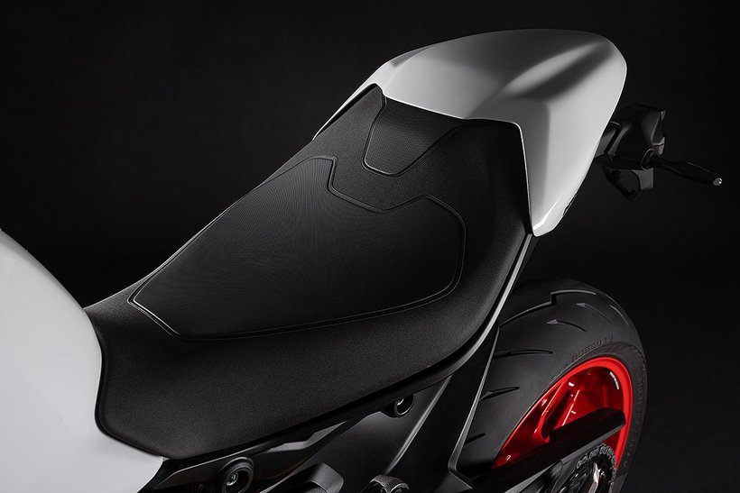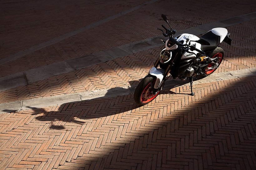Die leichteste und fortschrittlichste Monster aller Zeiten ist auf den ersten Blick unverkennbar eine echte Monster. Beginnend bei der Ergonomie wurden die Linien neu definiert, wobei Schlankheit und Benutzerfreundlichkeit des Vorgängermodells beibehalten und mit einer sportlicheren, nach vorne geneigten Sitzposition kombiniert wurden – dank eines Lenkers, der 7 Millimeter weiter vorne und 7 Millimeter höher positioniert ist, ähnlich wie bei den ersten Monsters. Das ergonomische Dreieck und alle Kontaktflächen zwischen Fahrerin bzw. Fahrer und Fahrzeug wurden gezielt überarbeitet, um Halt, Komfort und Vielseitigkeit optimal miteinander zu verbinden. So lässt sich die Monster mit minimalem Kraftaufwand angenehm und präzise bewegen – beim entspannten Cruisen, auf kurvigen Bergstraßen oder im dichten Stadtverkehr.