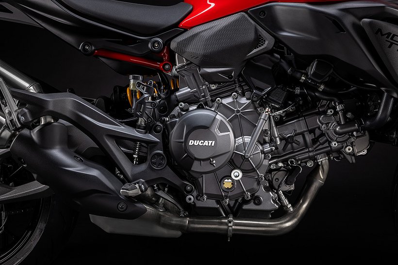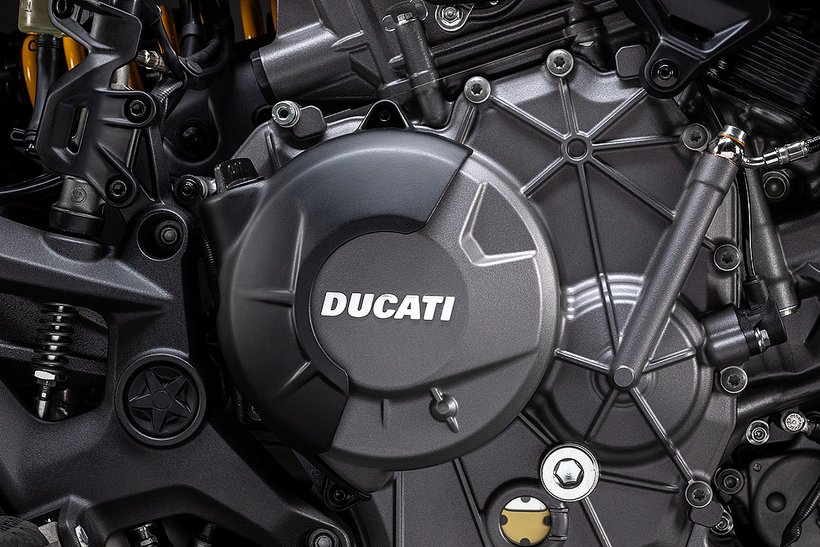 Der 90°-V2-Motor mit 890 cm³ Hubraum ist in der für dieses Modell verwendeten Version mit 54,3 kg um 6 kg leichter als sein Vorgänger, der Testastretta Evoluzione 11°. Ausgestattet mit der variablen Ventilsteuerung IVT und Einlassventilen mit hohlem Ventilschaft setzt er neue Maßstäbe in der Geschichte der Ducati-Zweizylindermotoren. Er kombiniert Leichtigkeit, Kompaktheit, geringen Kraftstoffverbrauch und niedrige Emissionen (Euro 5+ Homologation) und stellt somit eine perfekte Balance aus Performance und Effizienz dar. Mit einer Bohrung von 96 mm und einem Hub von 91,5 mm ergibt sich ein Verhältnis von 1,56 – ein Wert, der zwischen dem Testastretta- und dem Superquadro-Motor liegt. Der Motor liefert eine maximale Leistung von 111 PS bei 9.000 U/min, mit einer Drehzahlobergrenze bei 11.500 U/min. Das maximale Drehmoment beträgt 91,1 Nm bei 7.250 U/min und steht bereits bei niedrigen Drehzahlen zur Verfügung (mehr als 70 % des maximalen Drehmoments stehen bereits bei 3.000 U/min, zwischen 4.000 und 10.000 U/min sogar mehr als 80 %), was ein dynamisches Fahrverhalten in jeder Situation gewährleistet und sowohl im Stadtverkehr als auch bei sportlicher Fahrweise für Fahrspaß und Benutzerfreundlichkeit sorgt. Die gleichmäßige Verbrennung bei niedrigen Drehzahlen sorgt für eine äußerst konstante Leistungsabgabe bei geringer Drosselklappenöffnung. Das größere Schwungrad trägt zusätzlich zum Fahrspaß bei, insbesondere bei Touren oder im Stadtverkehr, da der Motor ein äußerst sanftes Ansprechverhalten aufweist.