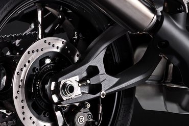 Die speziell entwickelte Zweiarmschwinge aus Aluminium-Druckguss ist robuster und direkt am Motor befestigt. Im Vergleich zur Multistrada V2 wurde der Schwingenlagerpunkt um 6 mm…
