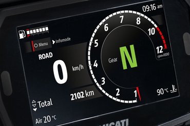 Die Vielseitigkeit dieses Modells zeigt sich auch darin, dass es für das Ducati Multimedia System (DMS) vorbereitet ist. Sobald das DMS aktiviert wurde, verbindet sich das Motorrad…