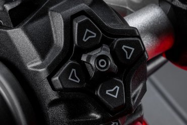 Der neue Petal-Joystick ist eine innovative Schaltereinheit, die präzise Steuerung mit benutzerfreundlicher Bedienung vereint. Mit diesem Joystick lässt sich mühelos zwischen den verschiedenen Fahrmodi und elektronischen Einstellungen navigieren. Dank seiner kompakten und funktionalen Bauweise bietet er eine intuitive Handhabung, die es dem Fahrer ermöglicht, sich vollständig auf das Fahren zu konzentrieren. Ein weiteres Beispiel für Ducatis kompromisslosen Fokus auf Performance und Benutzerfreundlichkeit.