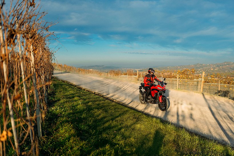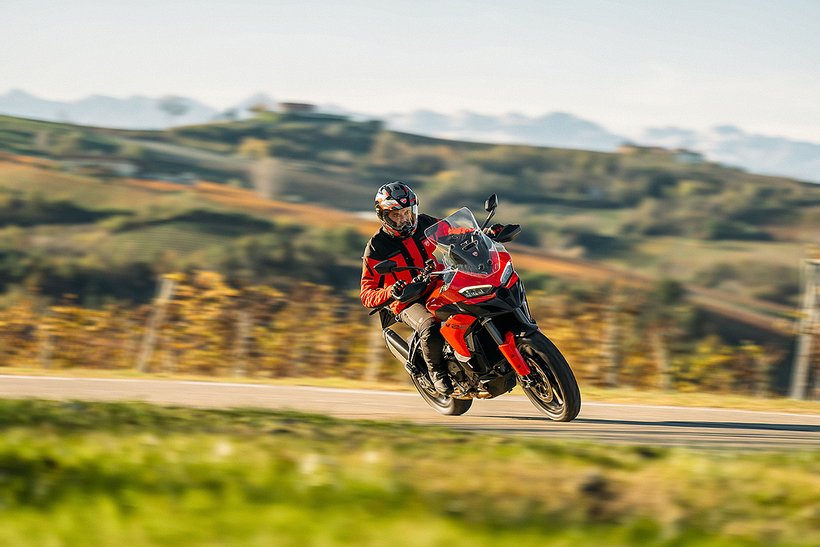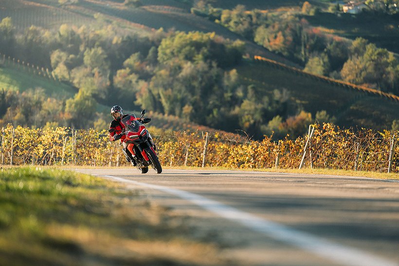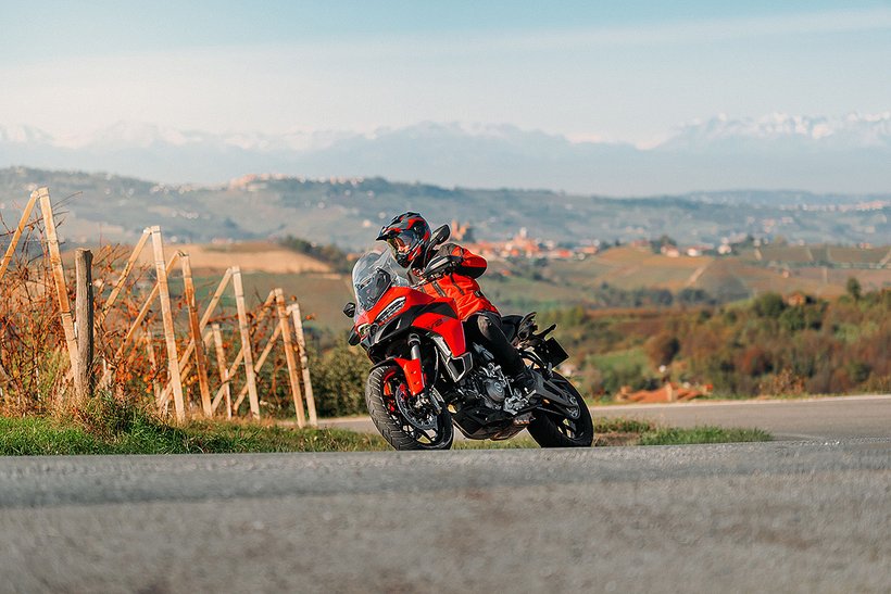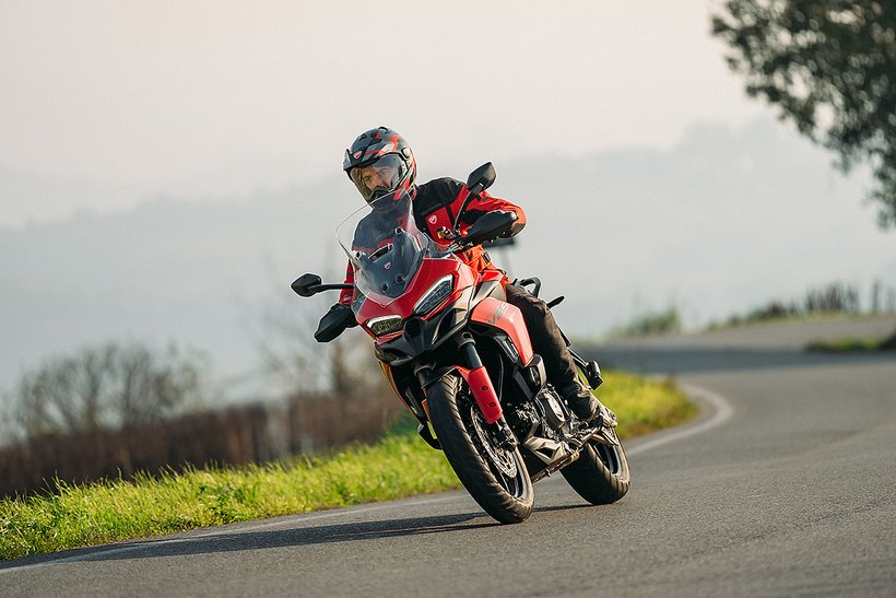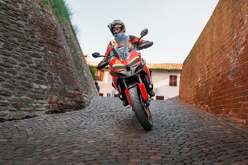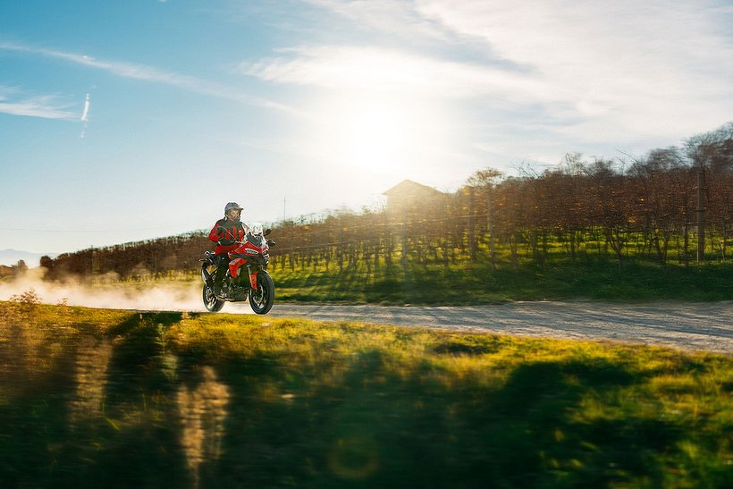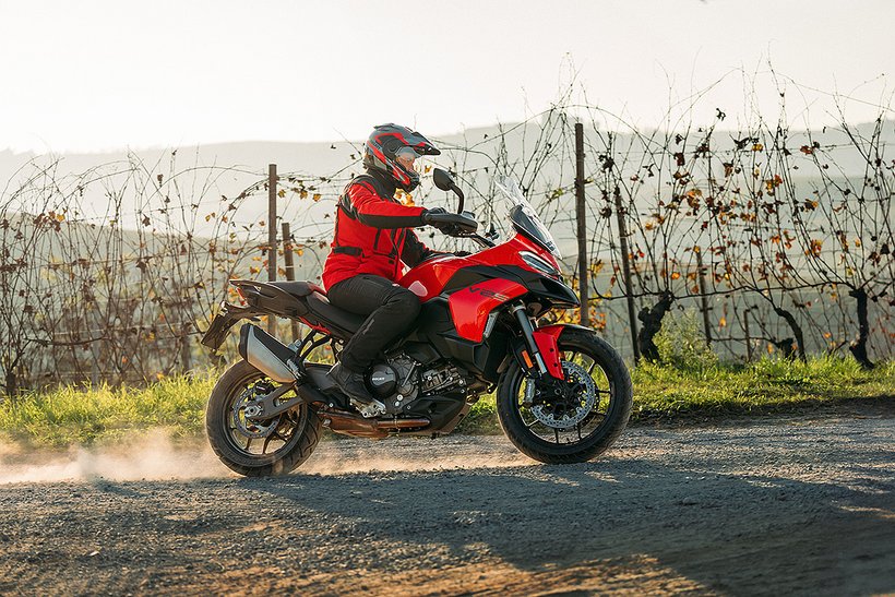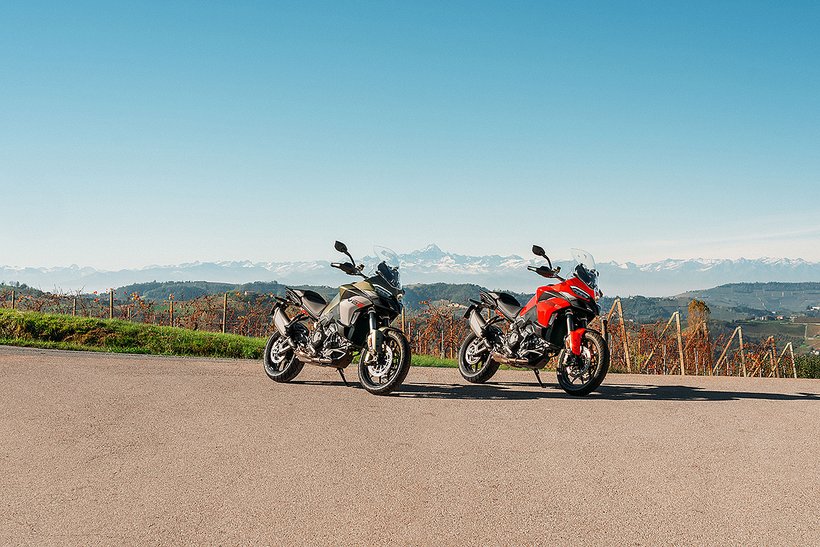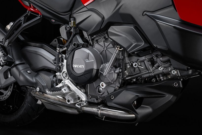In dieser Konfiguration ist der neue Ducati-V2-Motor mit einer Lichtmaschine ausgestattet, die um 150 Watt leistungsstärker ist, um selbst die höchsten elektrischen Anforderungen eines Reisemotorrads zu erfüllen. Zudem wurde das Gewicht des Schwungrads erhöht, was zu einer Steigerung der Schwungmasse um 12 % führt. Dies sorgt für ein sanfteres Ansprechverhalten und einen ruhigeren Motorlauf bei niedrigen Drehzahlen. Im Vergleich zur sportlicheren Variante steigt das Gewicht des Motors um 0,51 kg.