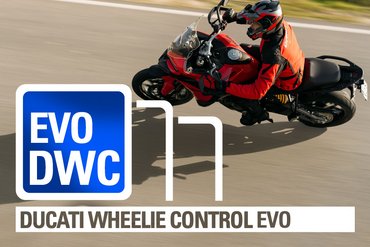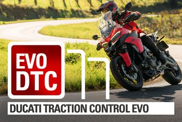 Die Strategie der Ducati Traktionskontrolle wird auch bei der Panigale V4 angewendet. Die Software arbeitet mit den Daten der 6-Achs-IMU und steuert den Schlupf des Hinterrads in Schräglage. Eine „prädiktive“ Regelstrategie reagiert nicht nur auf das Durchdrehen des Hinterrads, sondern auch auf dessen Schwankungen. Dadurch wird der Verlust der Bodenhaftung schneller erkannt, Schlupfspitzen werden reduziert, und ein schnelleres sowie gleichmäßigeres Eingreifen erfolgt. DTC EVO steuert nicht nur die Vorzündung und Einspritzung, sondern auch die Drosselklappenstellung, um optimale Verbrennungsparameter aufrechtzuerhalten. Dies führt zu mehr Stabilität am Kurvenausgang und damit zu einer besseren Beschleunigung mit sanfterem Ansprechverhalten. Die Traktionskontrolle ist in acht Stufen einstellbar: sechs für trockene Bedingungen und zwei für nasse. Dadurch kann der Fahrer die Regelstrategie flexibel an seinen Fahrstil und die jeweilige Bodenhaftung anpassen.