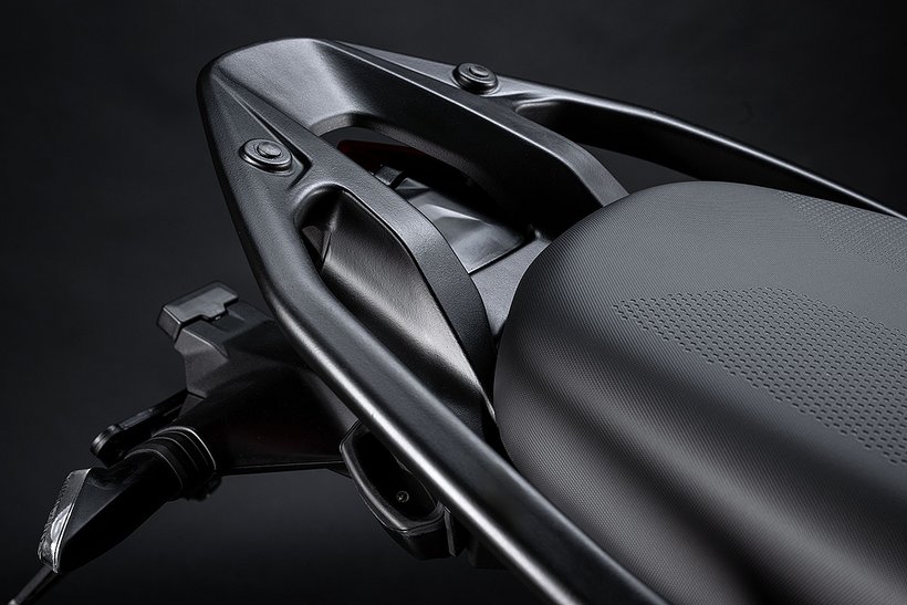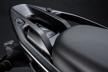 Das Heck ist besonders schlank und dank des kürzeren hinteren Haltegriffs elegant und ergonomisch gestaltet, was gleichzeitig eine hohe Funktionalität gewährleistet. Die Befestigungen für die Kofferträger sind harmonisch integriert und bieten einen sicheren Halt für die Seitenkoffer.