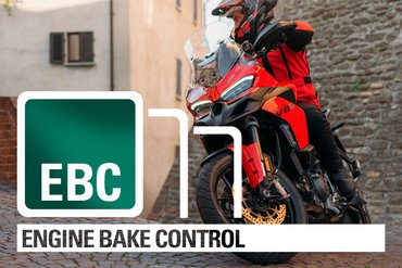 Engine Brake Control (EBC) unterstützt den Fahrer dabei, das Motorrad auch bei extremen Bremsmanövern am Kurveneingang zu stabilisieren. Dies geschieht durch die Regulierung des Motorbremsmoments – also der Kraft, die vom Motor beim Bremsen auf das Hinterrad wirkt. Das System, das auch in allen Ducati Superbikes zum Einsatz kommt, analysiert kontinuierlich Schräglage, Gasgriffstellung, Gang und Kurbelwellenfliehkräfte und balanciert im Zusammenspiel mit dem Ride-by-Wire-System die durch die Motorbremswirkung auf das Hinterrad übertragenen Kräfte aus.