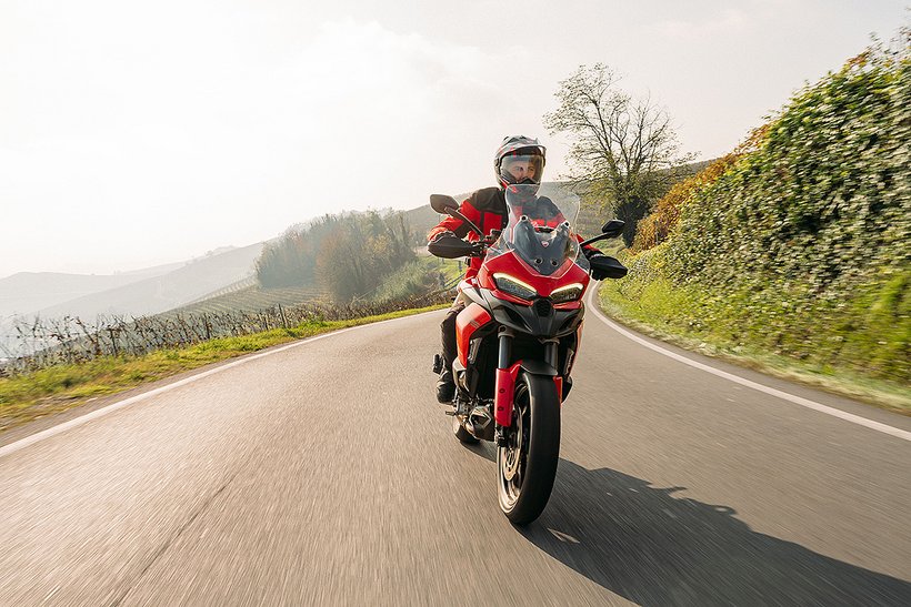 Im Riding Mode TOURING bietet die Ducati Multistrada V2 die volle Leistung, jedoch mit einer sanfteren und weniger direkten Gasannahme, um längere Fahrten komfortabler zu…