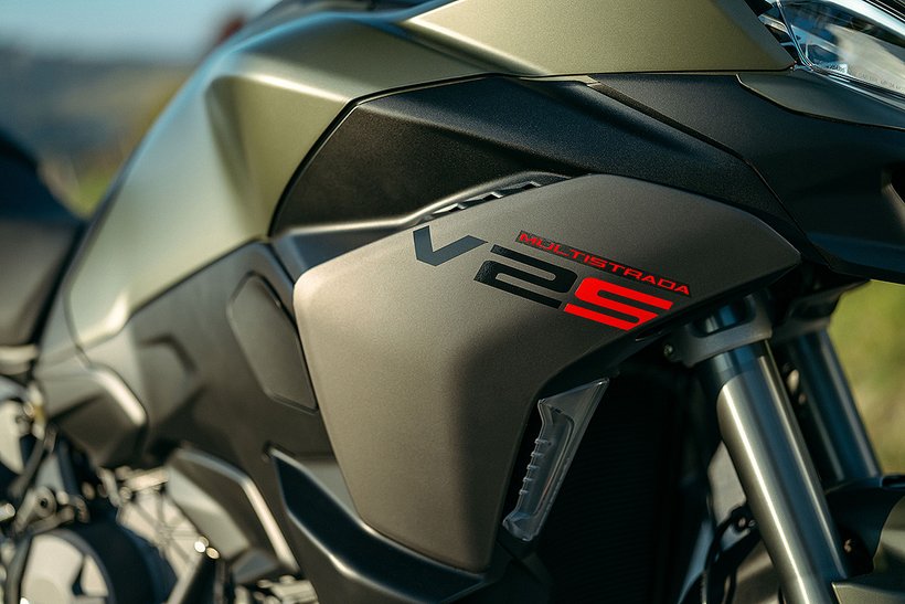 Wie bei allen Ducatis vereint sich auch in der Multistrada V2 Design und Funktionalität. Das Centro Stile Ducati hat die Linien des Motorrads in enger Zusammenarbeit mit den Ingenieuren der Forschungs- und Entwicklungsabteilung definiert, um aerodynamische Lösungen zu integrieren, die den thermischen Komfort und den Schutz vor der Witterung verbessern. Das neue höhenverstellbare Windschild wurde im Rahmen einer präzisen aerodynamischen Studie entwickelt, die auch die Windabweiser umfasst, welche nahtlos in die Frontlinie des Motorrads integriert sind. Zusätzlich wurden, wie bereits bei der Multistrada V4, die "Upwash"-Luftführungen eingeführt, die frische Luft gezielt zu den Beinen des Fahrers leiten.