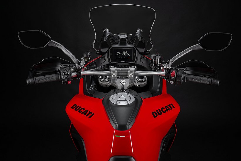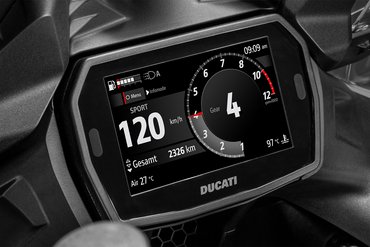 Die Vielseitigkeit dieses Modells zeigt sich auch in der serienmäßigen Integration des Ducati Multimedia-Systems (DMS) in der S-Version, während das Basismodell bereits für das System vorbereitet ist und es als Zubehör erhältlich ist. Sobald der Fahrer aufsteigt, verbindet sich das Motorrad automatisch über Bluetooth mit dem Smartphone und ermöglicht die Steuerung der wichtigsten Multimediafunktionen. Das Dashboard zeigt dabei Informationen wie den aktuellen Musiktitel, ein Symbol für eine neue Textnachricht oder den Namen des Anrufers an. Telefonanrufe und Musik können über das Freisprechsystem im Helm empfangen und gehört werden.