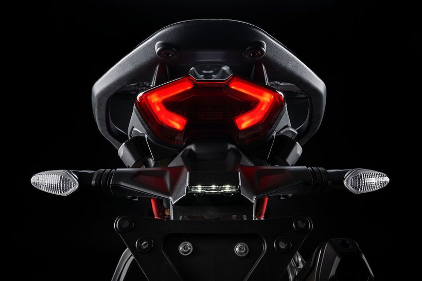 Die Funktionen des Elektronikpakets der neuesten Generation werden auf einem horizontal angeordneten 5"-TFT-Dashboard im Format 16:9 angezeigt und über einen „Petal“-Joystick gesteuert. Zur Betonung der Klarheit und Eleganz des neuen Dashboards wurden die Warnleuchten – mit Ausnahme der roten LED des Drehzahlbegrenzers – von der Außenmaske entfernt und ins Innere des Displays verlegt. Drehzahlmesser und Ganganzeige blinken pulsierend: Grün signalisiert den idealen Schaltzeitpunkt, Rot den Eingriff des Drehzahlbegrenzers. Während der Einfahrphase färbt sich der Drehzahlmesser Orange, wenn die empfohlene Drehzahl überschritten wird. Das Dashboard bietet drei Info-Modi – Road, Road Pro und Rally – jeweils mit automatischer Umschaltung zwischen Tag- und Nachtbeleuchtung. Sie unterscheiden sich in der Art der angezeigten Informationen und der grafischen Darstellung. Mit dem Joystick am Lenker kann während der Fahrt direkt zwischen den Modi gewechselt werden. So passt Road Pro beispielsweise die Anzeige in Echtzeit an den prozentual genutzten Leistungs- und Drehmomentanteil an. Darüber hinaus ermöglicht das Dashboard die Bluetooth-Kopplung mit einem Smartphone und einem Helm-Kommunikationssystem, um Musik abzuspielen, Anrufe entgegenzunehmen und Turn-by-Turn-Navigationsanweisungen zu empfangen, sofern das Navigationssystem installiert ist.