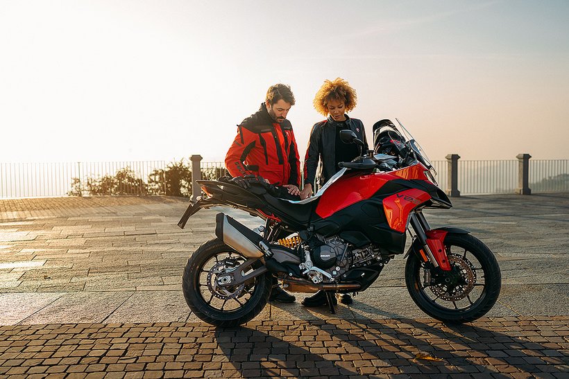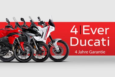Mit dieser Ducati kann man sorgenfrei die Welt bereisen. Dank herausragender Wartungsintervalle – eine Ventilspielkontrolle ist erst alle 45.000 km erforderlich – sowie der Programme 4EVER Ducati und Roadside Assistance ist für maximale Sicherheit gesorgt. Das 4EVER Ducati-Programm bietet eine Garantie von 4 Jahren ohne Kilometerbegrenzung, während Roadside Assistance zusätzlichen Service wie Pannenhilfe, Transport für Fahrer und Sozius, ein Ersatzfahrzeug sowie Übernachtungen in einem 4-Sterne-Hotel umfasst, falls während der Garantiezeit Probleme auftreten. Und das alles mit der Sicherheit eines Netzwerks von über 800 offiziellen Ducati-Händlern in mehr als 90 Ländern weltweit. Weitere Details zu diesen Programmen sind auf den offiziellen Ducati-Websites verfügbar.
