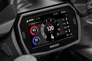 Das Motorrad ist serienmäßig mit der Ducati Cruise Control (DCC) ausgestattet, einem Tempomaten, der lange Autobahnfahrten entspannter und komfortabler gestaltet. Über die linke…
