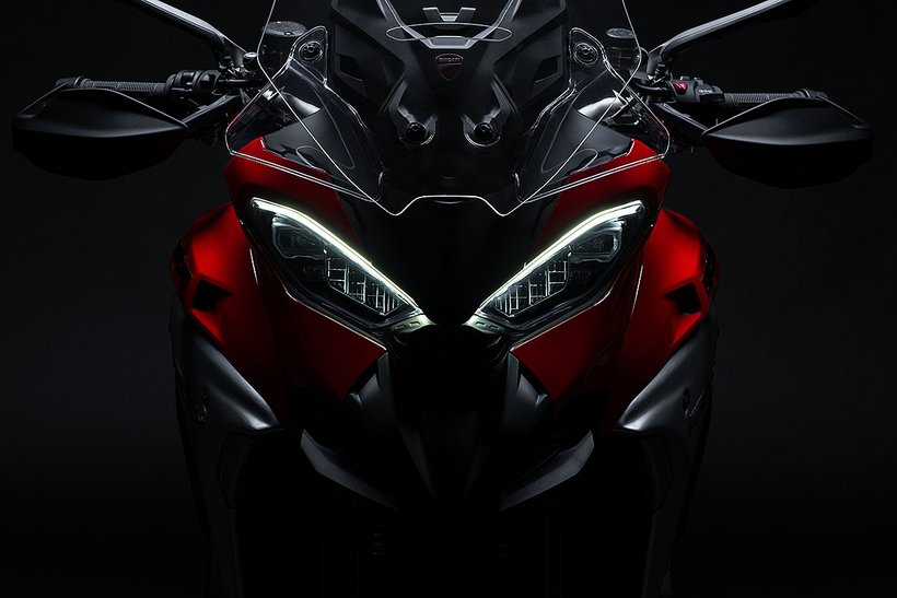 LED-Leuchtmittel für Rücklicht, Bremslicht, Standlicht und Blinker sind heutzutage nahezu Standard. Doch bei den Modellen Multistrada V4 S, Pikes Peak, Rally und dem Spitzenmodell RS wird ein LED-Hauptscheinwerfer mit Kurvenlicht (DCL) und beeindruckender Lichtleistung eingesetzt. Dies ist unverzichtbar, wenn Ihre Tour einmal länger dauert, und Sie müssen sich nie wieder Gedanken über den Wechsel von Glühbirnen machen.