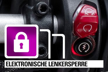 Einfach nach links oder rechts einschlagen und die Taste „Lenkersperre“ drücken – ein massiver Stahlbolzen verriegelt elektronisch die Lenkung und erschwert dadurch das Wegschieben oder Wegtragen des Motorrads.