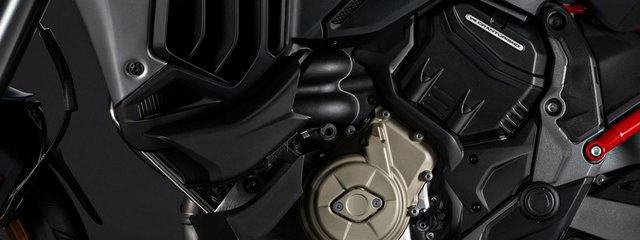 Der Ducati V4-Granturismo-Motor beeindruckt sowohl bei sportlicher Fahrweise, wo pure Leistung zählt, als auch im urbanen Umfeld, wo präzise Dosierung und sanftes Ansprechverhalten gefragt sind. Eine herausragende Eigenschaft des V4-Granturismo-Motors sind auch die Serviceintervalle: Kein Serienmotorrad erreicht dieses Niveau. Das Öl muss lediglich alle 15.000 km oder alle 24 Monate gewechselt werden, und das Ventilspiel wird sogar nur alle 60.000 km überprüft. Damit hat Ducati die Betriebskosten auf ein bemerkenswert niedriges Niveau gesenkt.