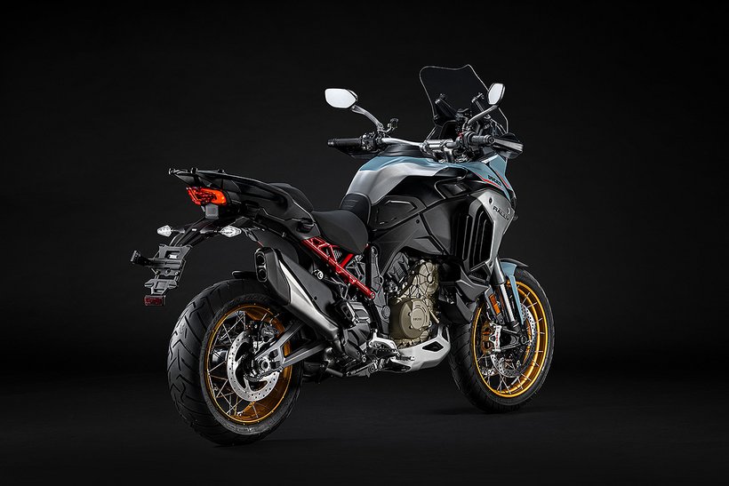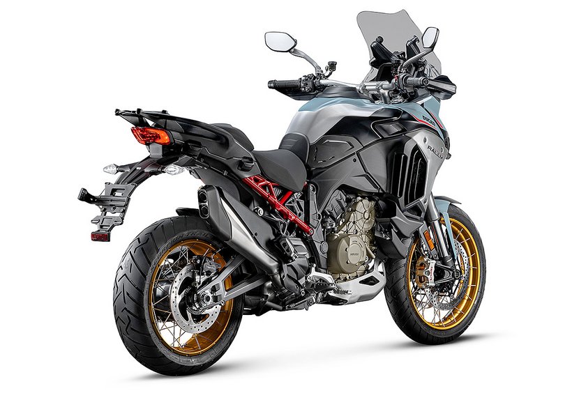 Alle Multistrada V4 FL Modelle erfüllen die strengen Euro 5+ Standards, wofür eine fortschrittliche Zylinderdeaktivierung und eine neue Auspuffanlage mit einem eleganten Schalldämpfer erforderlich waren. Der Verbrauch wurde um 6 % reduziert, während die CO2-Emissionen um 10 g/km gesenkt wurden. Trotz dieser Ergebnisse blieb die Motorleistung der Multistrada V4 mit 170 PS bei 10.750 U/min unverändert, und das Sounderlebnis konnte sogar verbessert werden.