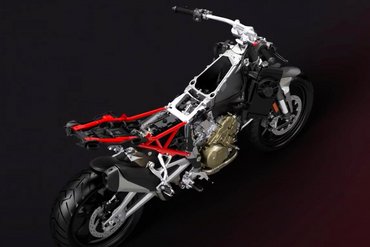 Die neu positionierte Zweiarmschwinge der Multistrada V4 FL Modelle besticht durch ihre leichte und robuste Gitterstruktur. Der Schwingendrehpunkt wurde um 1 mm nach oben versetzt…