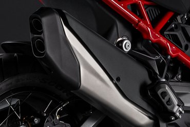 Alle Multistrada V4 FL Modelle erfüllen die strengen Euro 5+ Standards, wofür eine fortschrittliche Zylinderdeaktivierung und eine neue Auspuffanlage mit einem eleganten…