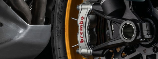 Ducati hat mit dem neuen Electronic Combined Braking System (eCBS) ein fortschrittliches Bremssystem entwickelt, das neue Maßstäbe in puncto Sicherheit und Fahrdynamik setzt. Es kombiniert eine adaptive Front-to-Rear- und Rear-to-Front-Logik, die je nach Fahrsituation und Fahrzeugposition gezielt zum Einsatz kommt. Bei Betätigung der Vorderradbremse aktiviert die Front-to-Rear-Logik bei Bedarf auch die Hinterradbremse. Dies erhöht die Gesamtbremsleistung und verbessert die Stabilität bei starken Verzögerungen. Umgekehrt unterstützt die Rear-to-Front-Logik – ausgelöst durch die Betätigung der Hinterradbremse – die Verzögerung zusätzlich über die Vorderradbremse. Gleichzeitig bewirkt sie ein Einfedern des Fahrwerks, wodurch der Schwerpunkt abgesenkt wird. Das sorgt für ein entspannteres Fahrverhalten, insbesondere im Alltags- und Tourenbetrieb, da die Vorderradbremse weniger häufig genutzt werden muss. In Modellen mit elektronischem Fahrwerk minimiert zudem eine Anti-Dive-Funktion das Eintauchen der Gabel beim Bremsen. Dabei werden nicht nur die Gabelposition, sondern auch der tatsächliche Bremsdruck an den Bremssätteln in Echtzeit ausgewertet, um die Druckstufe dynamisch anzupassen. Ein weiteres intelligentes Feature ist die automatische Anpassung der Bremskraftverteilung an die Beladung: Wird eine höhere Last am Heck erkannt – etwa durch Gepäck oder Sozius – wird der Bremsanteil auf das Hinterrad entsprechend erhöht. Das Ergebnis ist ein harmonischeres, sichereres Bremsverhalten unter allen Bedingungen.