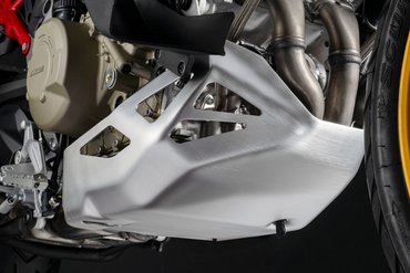 Da die Multistrada V4 Rally auch für den Offroad-Einsatz entwickelt wurde, muss der Motorschutz einiges wegstecken können. Bei der Multistrada V4 Rally FL besteht er aus 3 mm dickem Aluminium und schützt den Motor dadurch noch wirksamer.