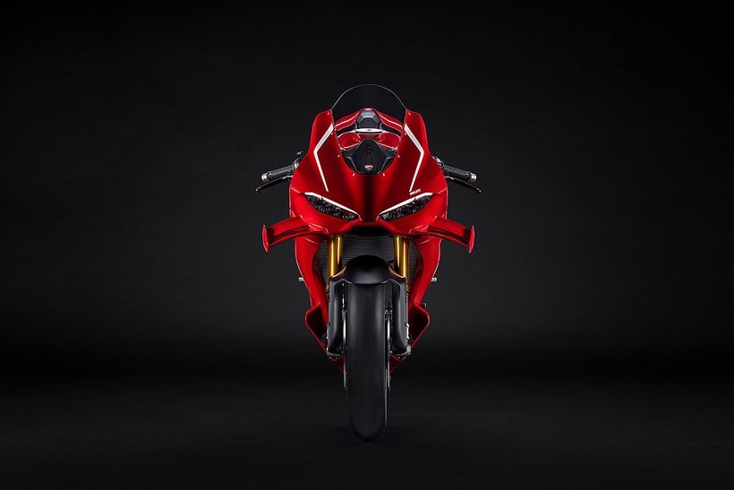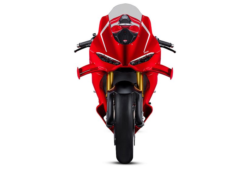 Aufgrund ihrer fast ausschließlich rennstreckenspezifischen Nutzung ist die Panigale V4 R nicht mit den semiaktiven, elektronisch einstellbaren Komponenten der V4 S ausgestattet, sondern verfügt über mechanische Federelemente mit Nadelventilen des schwedischen Herstellers Öhlins. Eine 43 mm NPX 25/30-Gasdruckgabel mit TiN-beschichteten Standrohren, einem 25 mm großen Kolben im linken Gabelholm zur Regulierung der Druckstufe und einem 30 mm großen Kolben im rechten Gabelholm für die Zugstufe kommt zum Einsatz. Die NPX-Bauweise, wie sie auch in der WorldSBK verwendet wird, minimiert die Gefahr von Ölkavitationen. Das Ergebnis ist eine verbesserte Fahr- und Bremsstabilität beim Anbremsen sowie eine bessere Absorption von Bodenwellen, was sich in einem besseren Fahrgefühl niederschlägt.