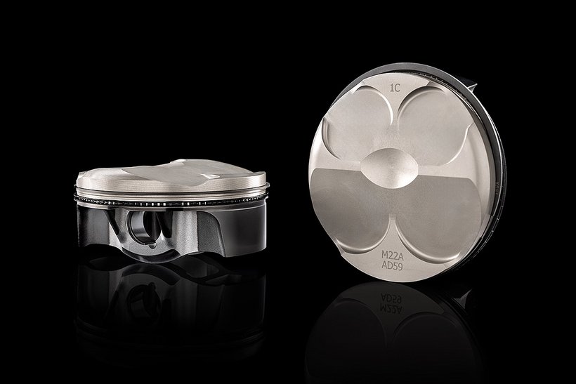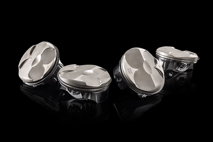 Die Kolben sitzen bei der R-Version auf Titanium-Pleueln. Die Abstammung vom Hochleistungs-Rennmotor manifestiert sich ebenfalls im hohen Verdichtungsverhältnis von 14:1. Die…