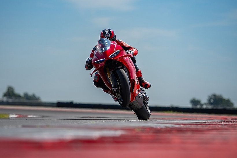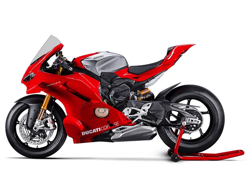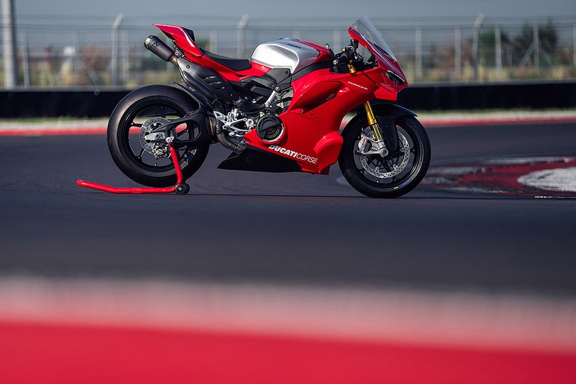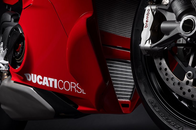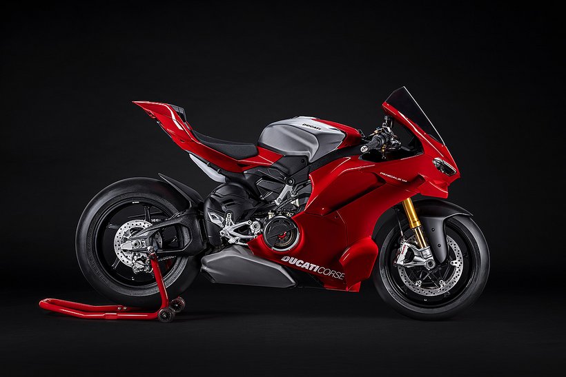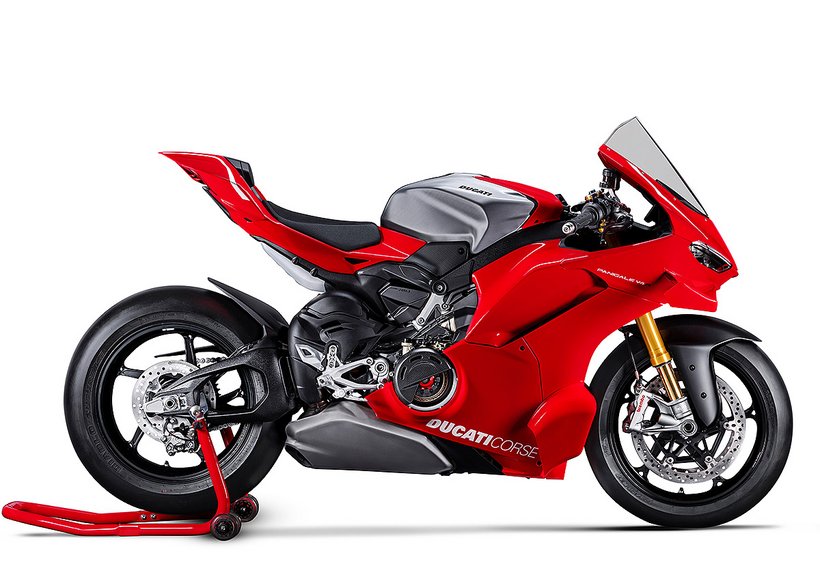 Der Desmosedici Stradale R – das Bindeglied zwischen dem 1.103 cm³ V4 der Panigale V4 und dem MotoGP-Motor – hebt die Leistung eines straßenzugelassenen Motors in beispiellose Höhen. Für den Einsatz in der Superbike-Weltmeisterschaft konzipiert, hat dieser 998 cm³-Motor zahlreiche Änderungen erfahren, die ihn noch dichter an das MotoGP-Aggregat bringen. Der Panigale V4 R-Motor leistet maximal 218 PS (162 kW) bei 15.500 U/min (EURO5+-Homologationswerte) und hat ein Verdichtungsverhältnis von 14,0:1. Der Drehzahlbegrenzer erlaubt 16.000 U/min, im sechsten Gang sogar 16.500 U/min. Diese Werte – beeindruckend für einen 998 cm³-Motor – lassen sich aber noch weiter steigern. Mit dem Ducati Performance Racing-Auspuff von Akrapovič und einem neuen Racing-Öl von Shell kann eine Leistung von 239 PS erreicht werden.