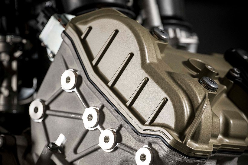 Wer Gewichtsrekorde brechen möchte, darf sich nicht von den Herstellungskosten abschrecken lassen. Deshalb wurde auch bei allen Motorgehäusedeckeln konsequent auf Leichtbau gesetzt. Die Zylinderkopfdeckel, die Ölwanne, der Lichtmaschinendeckel und die zweiteilige Kupplungsabdeckung bestehen aus einer extrem leichten Magnesium-Aluminium-Legierung.