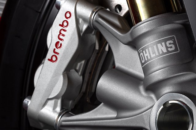 Brembo liefert die schwimmend gelagerten 330-mm-Bremsscheiben sowie die Monobloc-Bremszangen Brembo Hypure®. Diese aus einer Aluminium-Silizium-Legierung in einem Stück gefertigten…