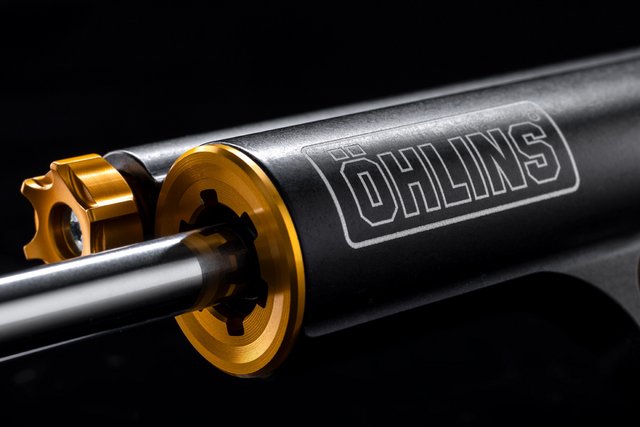 Hydraulische Öhlins NPX 25/30 USD-Closed-Cartridge Gasdruckgabel mit TiN-beschichteten Tauchrohren, einstellbar in Zug-, Druckstufe und Vorspannung, 43 mm Standrohrdurchmesser, 125 mm Federweg
