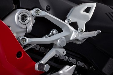 Wie bei den SBK-Rennmotorrädern erfolgt die Höhenverstellung des Hecks über die Federbein-Umlenkung und nicht über die Veränderung der Dämpferlänge. Die aus Stahl gefertigte, gelagerte Umlenkstange basiert auf einem Design aus der Superbike-Welt. Im Vergleich zum bisherigen System erlaubt diese eine präzisere Abstimmung und bietet einen deutlich größeren Einstellbereich (32,4 mm gegenüber 13 mm).