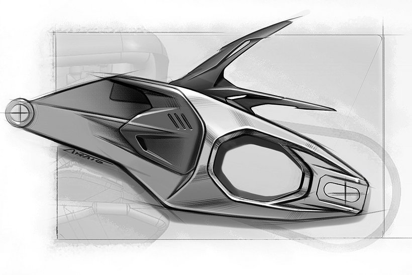 Die Form des 17-Liter-Aluminiumtanks, bei dem sich ein Teil des Treibstoffs unter der Fahrersitzbank befindet, wurde für den Renneinsatz optimiert. Das flache Design erlaubt eine…