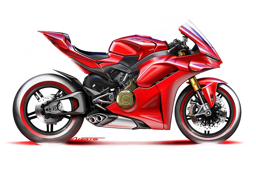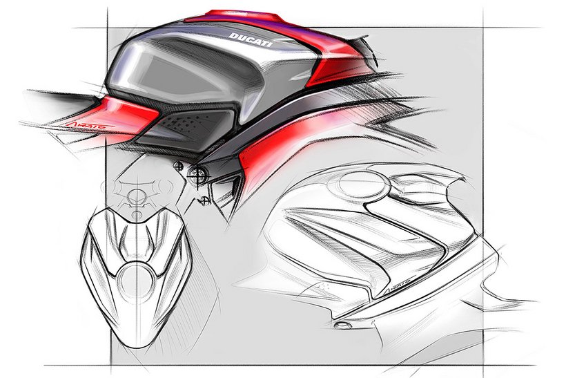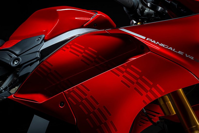 Das Design der neuen Panigale V4, umgesetzt vom Centro Stile Ducati, wurde von der legendären Ducati 916 inspiriert. Die Designer haben die Formen der Ikone aus den 1990er Jahren mit den ergonomischen und aerodynamischen Lösungen der Desmosedici GP kombiniert, um eine optimale Rennstreckenperformance zu gewährleisten. Die Seitenansicht der neuen Panigale V4 zeigt das charakteristische Gleichgewicht zwischen Vorder- und Hinterrad der 916, kombiniert mit einem eher horizontalen Layout, ähnlich den aktuellen MotoGP-Motorrädern. Auch der Scheinwerfer erinnert an die markanten Linien der 916, und der Lufteinlass ist nun zentral unter der Verkleidung verborgen.
