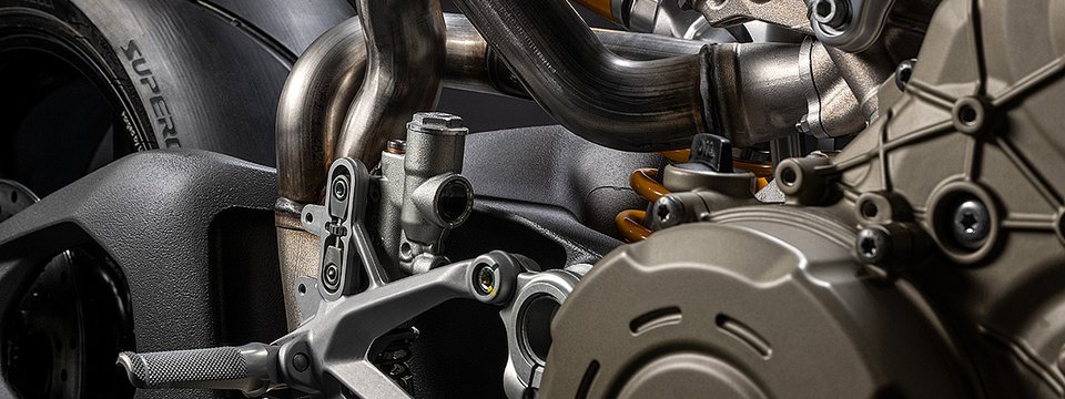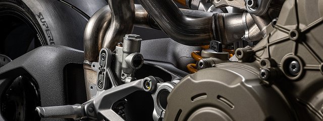 Die enge Zusammenarbeit mit Ducati Corse hat zu einem Motor geführt, der kompakt, leicht und zugleich äußerst leistungsstark ist. In der 90-Grad-V-Bauweise gleichen sich die…