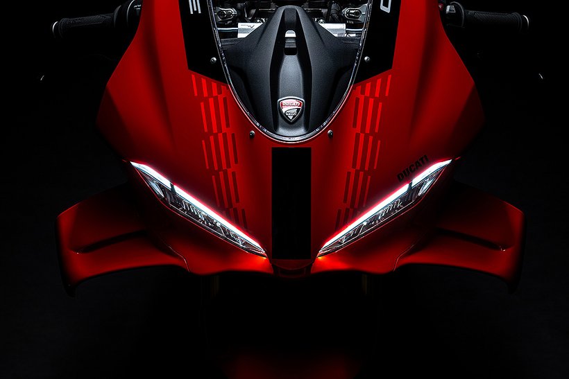 Der Full-LED-Scheinwerfer verfügt über ein extrem schlankes, V-förmiges Tagfahrlicht, das eine Hommage an die Ducati 916 darstellt, und der Scheinwerfer integriert auch die Blinker auf elegante Weise. Das Rücklicht mit seinem markanten doppelten C-Layout ist ebenfalls mit LED-Technologie ausgestattet.