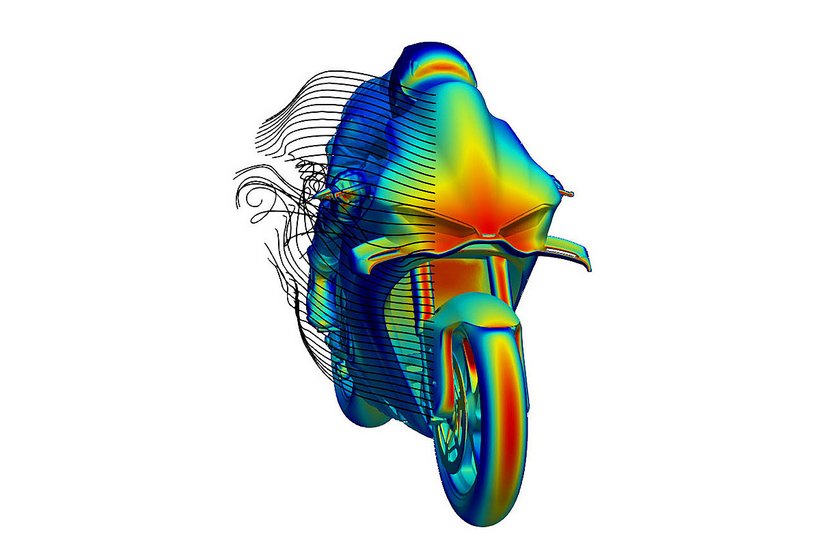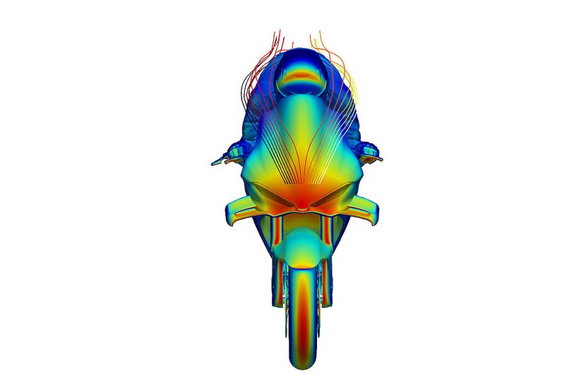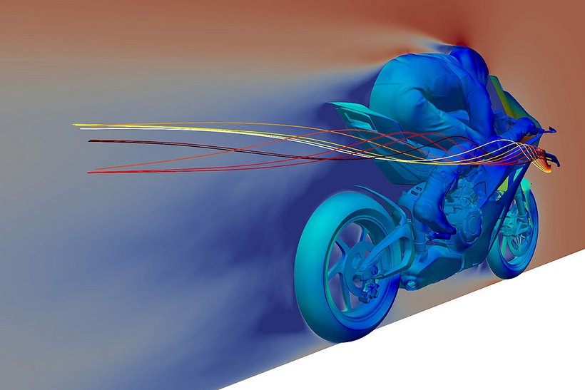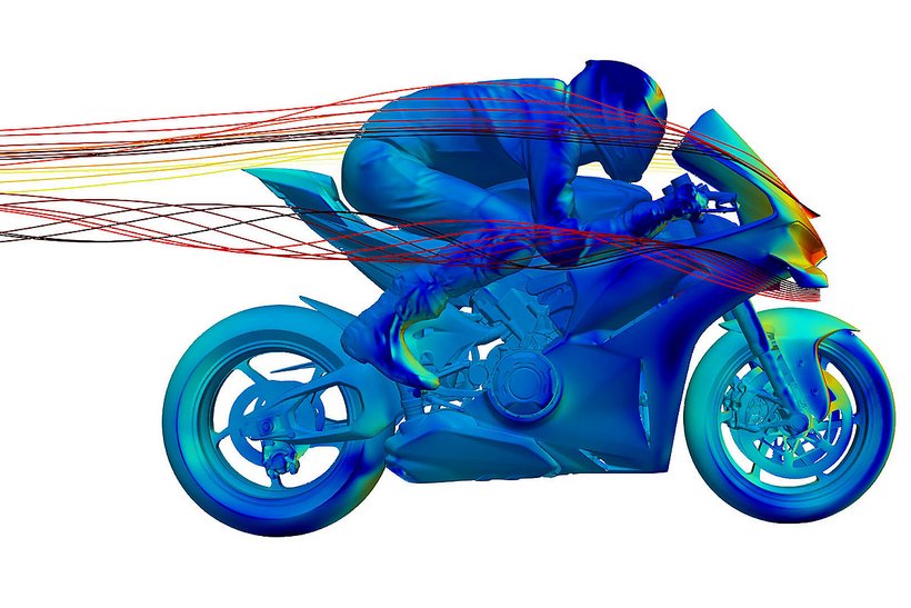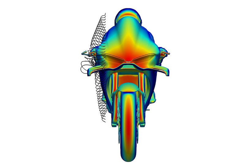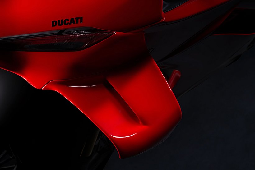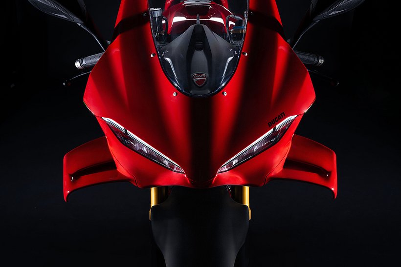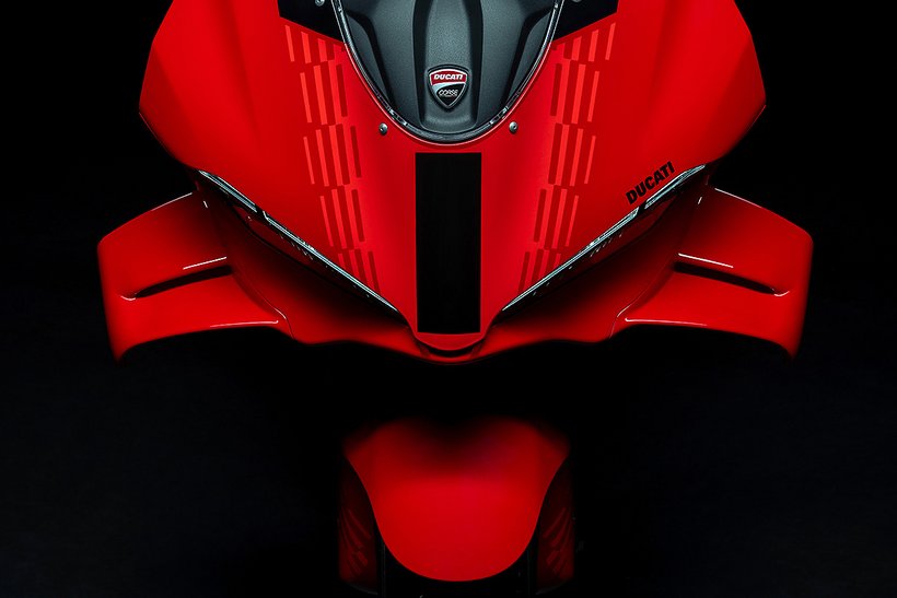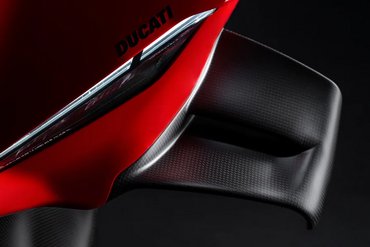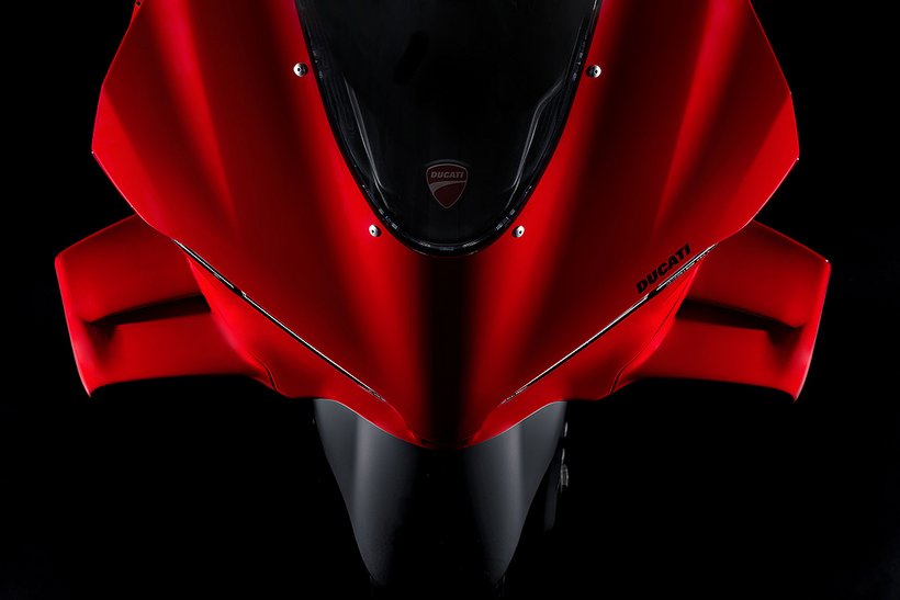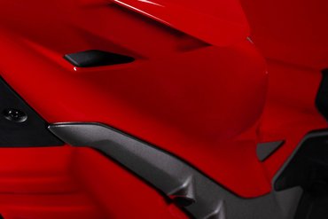 Die neue Verkleidung reduziert den Luftwiderstand um 4 % und schützt den Fahrer besser, indem sie eine Art „Luftblase“ aus ruhiger Luft bildet. Besonders an den Händen und Schultern bietet die Verkleidung zusätzlichen Schutz. Die hocheffizienten Winglets sind nahtlos in die Front integriert und bestehen aus zwei Elementen – dem Hauptflügel und dem Klappenflügel, die durch einen Schlitz voneinander getrennt sind. Der Abtrieb der kompakteren Winglets bleibt im Vergleich zum Vorgängermodell unverändert. Die veränderte Form der Verkleidungsvorderkante verbessert die Agilität des Motorrads bei Richtungswechseln, insbesondere bei hoher Geschwindigkeit. Gleichzeitig optimieren die angepasste Form des Kotflügels und die Luftführungen vor den Kühlern die Effizienz des Kühlsystems, insbesondere des Ölkühlers.