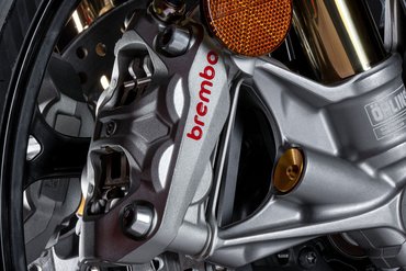 Brembo liefert die schwimmend gelagerten 330-mm-Bremsscheiben sowie die Monobloc-Bremszangen Brembo Hypure®. Diese aus einer Aluminium-Silizium-Legierung in einem Stück gefertigten…
