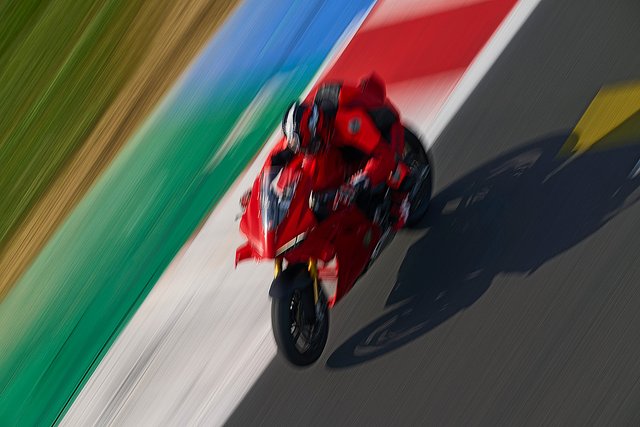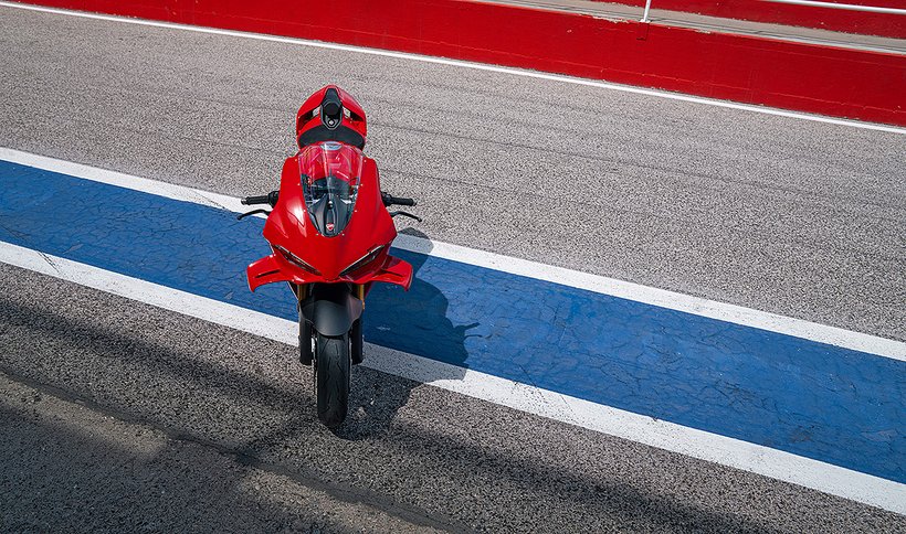 Die neue Panigale V4 ist ein Motorrad, das es den Fahrern ermöglicht, dank beispielloser elektronischer Lösungen und Technologien, die größtenteils aus der MotoGP stammen, die Empfindungen eines professionellen Fahrers zu erleben. Es verfügt über beeindruckende Merkmale wie den V4-Motor mit desmodromischer Ventilsteuerung und gegenläufig drehender Kurbelwelle sowie über ein erstklassiges Fahrwerk und fortschrittliche Elektronik, die eine enge Verwandtschaft mit der Desmosedici GP aufzeigen. Ein Motorrad, das in der Lage ist, das Fahrkönnen seines Fahrers, egal ob Profi oder Amateur, zu verbessern und ihm das nötige Vertrauen zu geben, um seine Grenzen auf der Rennstrecke zu erweitern.