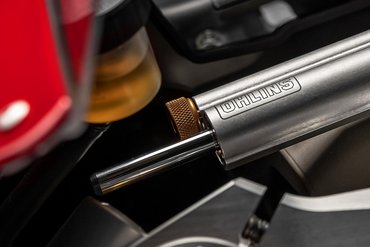 Der elektronisch einstellbare Lenkungsdämpfer von Öhlins, dem renommierten schwedischen Spitzenhersteller, sorgt für eine stabile Fahrzeugführung, selbst wenn das Vorderrad…