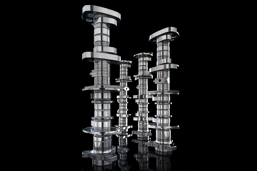 Der Desmosedici Stradale ist mit vier obenliegenden Nockenwellen ausgestattet, die insgesamt 16 Ventile steuern – je zwei Einlass- und zwei Auslassventile pro Zylinder. Die Einlassventile haben einen Durchmesser von 34 mm, die Auslassventile messen 27,5 mm. Für maximale Haltbarkeit und thermische Stabilität bestehen die Ventilsitze aus hochfestem Sintermetall – eine Technologie, die sich auch im Rennsport bewährt hat.