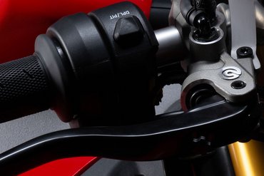 Die Schaltergruppe am Lenker ermöglicht es dem Fahrer, die Traction-Control (DTC), Slide-Control (DSC), Wheelie-Control (DWC), Launch-Control (DPL) und Engine-Brake-Control (EBC) während der Fahrt stufenweise anzupassen. Mit nur einem Tastendruck kann der Fahrer in Echtzeit Änderungen vornehmen, um sich schrittweise an seine persönlichen Grenzen heranzutasten oder flexibel auf wechselnde Fahrsituationen zu reagieren.