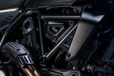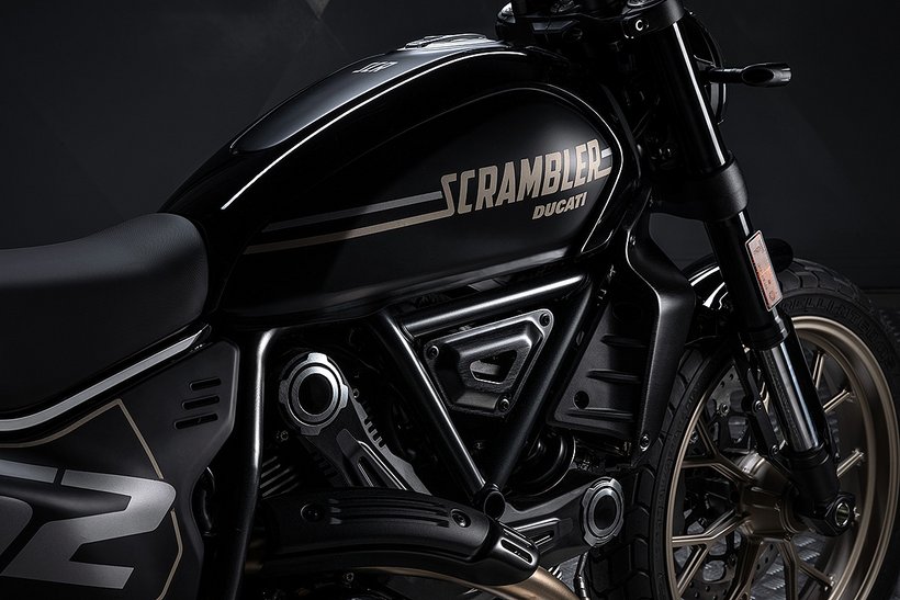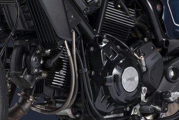 Der Motor, ein wesentlicher Teil der Persönlichkeit der neuen Ducati Scrambler, wurde ebenfalls einem optischen Update unterzogen: schwarz lackiert, mit gefrästen und polierten Kühlrippen sowie neuen Kupplungs- und Lichtmaschinenabdeckungen mit dem „X“-Logo. Um den Dark-Style zu betonen, wurde der Motor bei der Scrambler Icon Dark komplett in Schwarz gehalten.