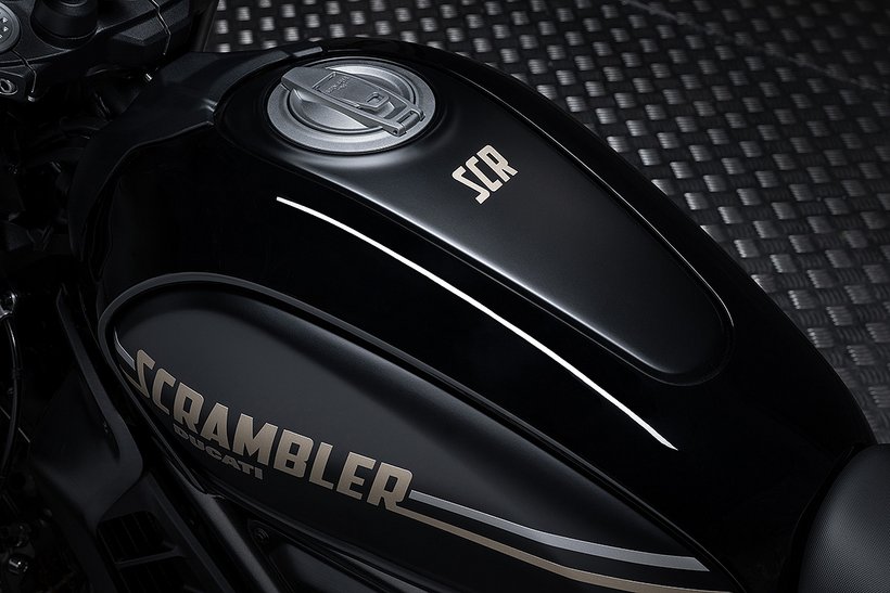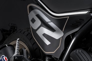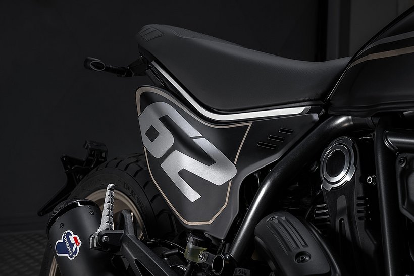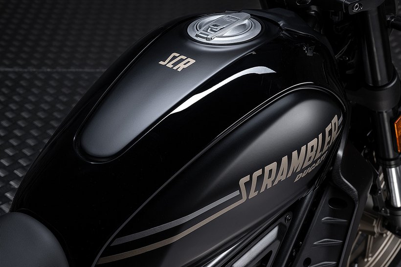 Die edlen Tankblenden passen perfekt zur traditionellen Tropfenform des 14,5-Liter-Tanks. Ein weiteres schönes Detail ist die Aufschrift „Born free – 1962“, die in den Tankdeckel eingearbeitet ist und an die erste Ducati Scrambler erinnert, die 1962 in Borgo Panigale vom Band lief.