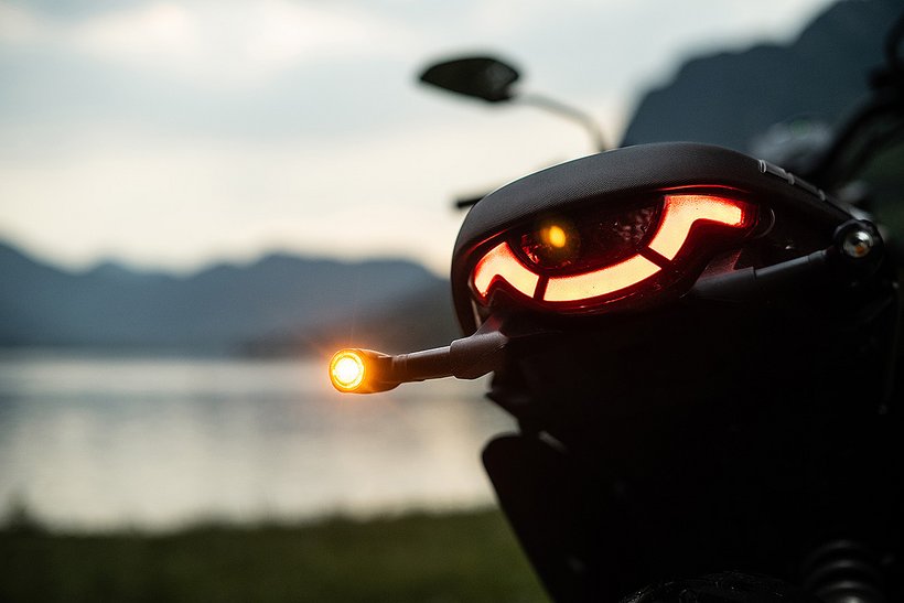 Das vordere Tagfahrlicht (DRL) ist dank seiner vier Sektoren sofort erkennbar. Der Full-LED-Scheinwerfer bewahrt das markante „X“, das an das Klebeband erinnert, das in den 70er-Jahren auf den Scheinwerfern von Geländemotorrädern verwendet wurde. Auch das Design des Rücklichts hat sich weiterentwickelt, bleibt jedoch der klassischen Halbkreisform treu. Letztendlich sind nun alle Lichtquellen, einschließlich der Blinker, mit moderner LED-Technik ausgestattet.