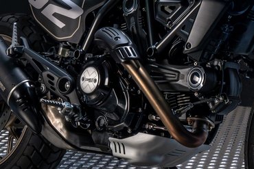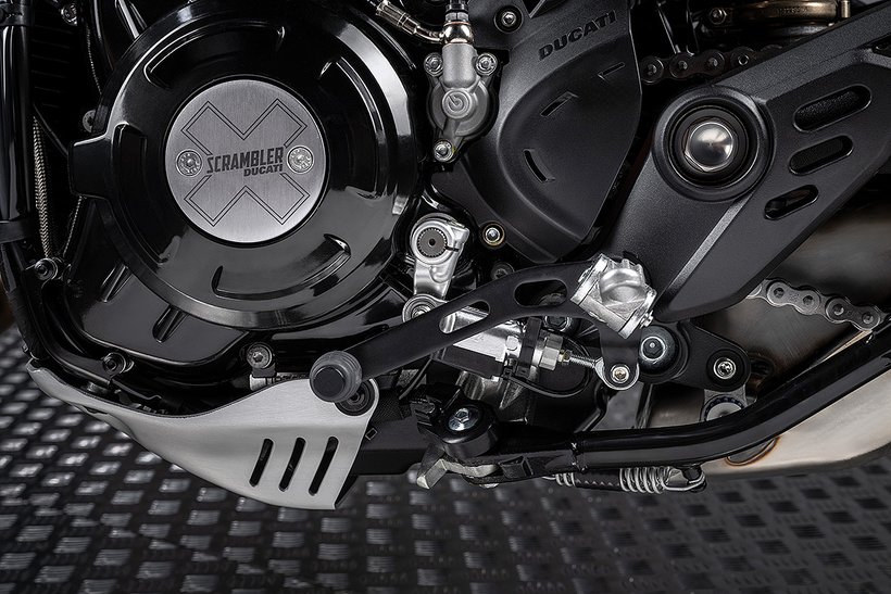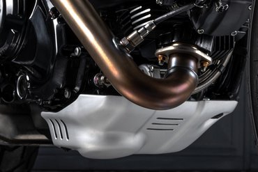 Der serienmäßige Ölwannenschutz aus Aluminium deckt den größten Teil des Motors ab, fügt sich perfekt in die Linie der Scrambler Full Throttle ein und schützt zusätzlich den Motor.