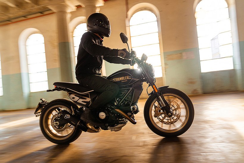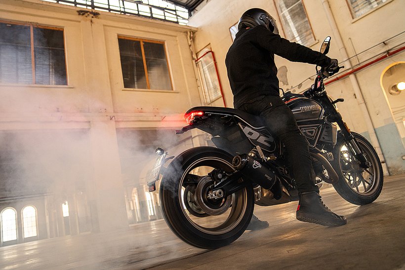 Ganz einfach: Wendigkeit, Leichtigkeit und Sicherheit. Extrem leicht, noch wendiger und dank eines neuen Rahmens, einer neuen Schwinge und eines leichteren Motors sind die Scrambler-Modelle der zweiten Generation 4 kg leichter als ihre Vorgänger. Einfach probefahren – man spürt den Unterschied.